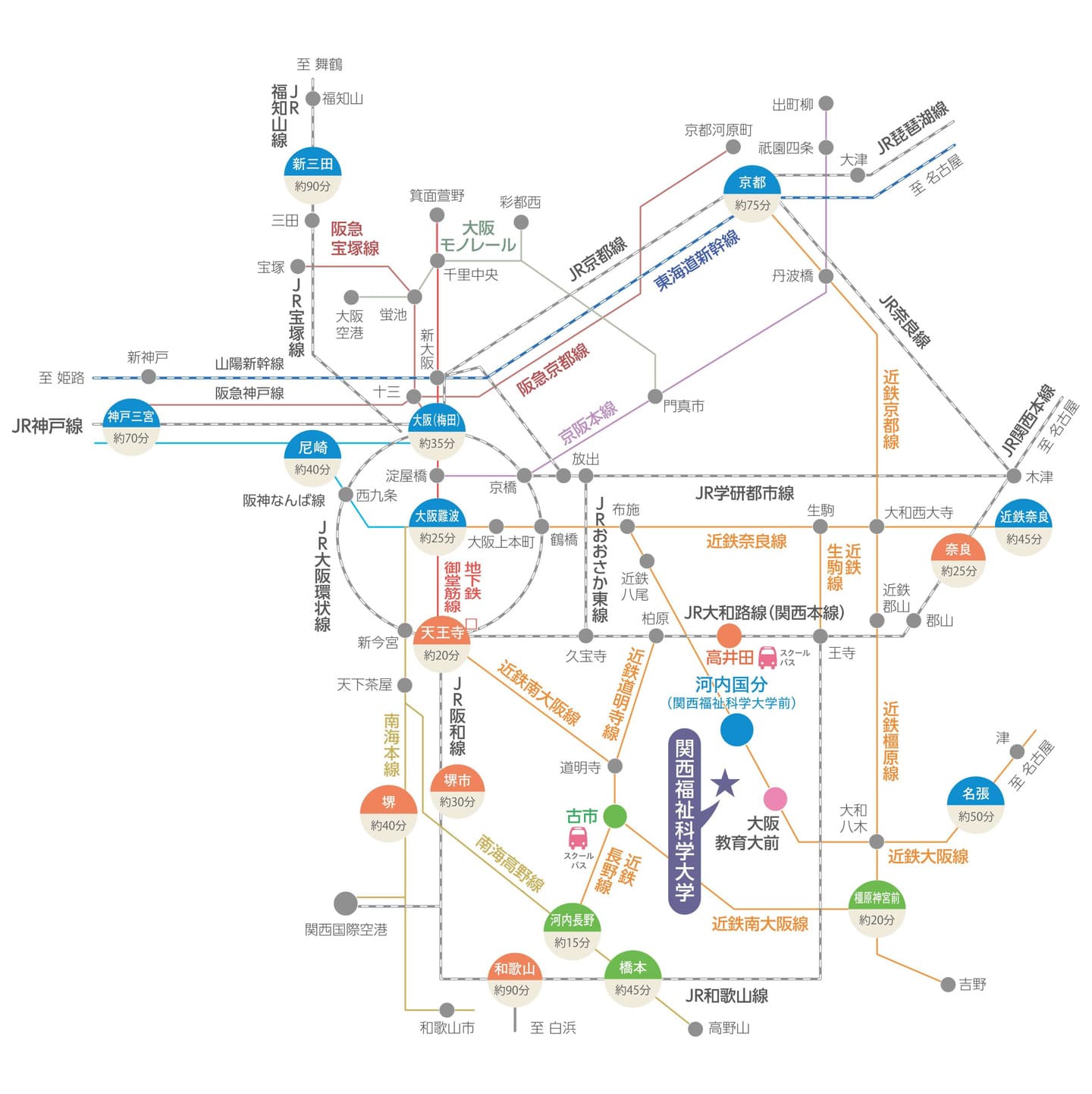 詳細は 学校法人 玉手山学園 関西福祉科学大学 ホームページをご参照ください。 最寄り駅:近鉄「河内国分駅」徒歩約12分